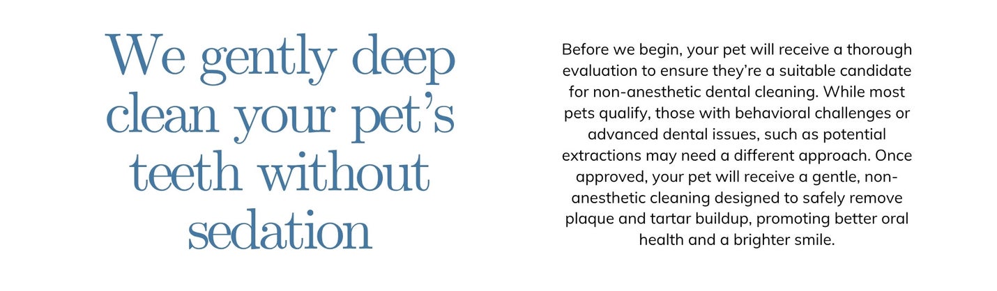An anesthetic dental procedure typically involves sedation or anesthesia to carry out a complete dental treatment, such as tooth extractions, endodontics (root canals), and X-rays. In contrast, at Bright Smiles Pet Dental, our Preventive non-anesthetic dental cleaning is a gentle, non-invasive procedure that doesn't require any medications or sedation. Using specialized techniques, I ensure that your pet stays safe and comfortable throughout the entire process.