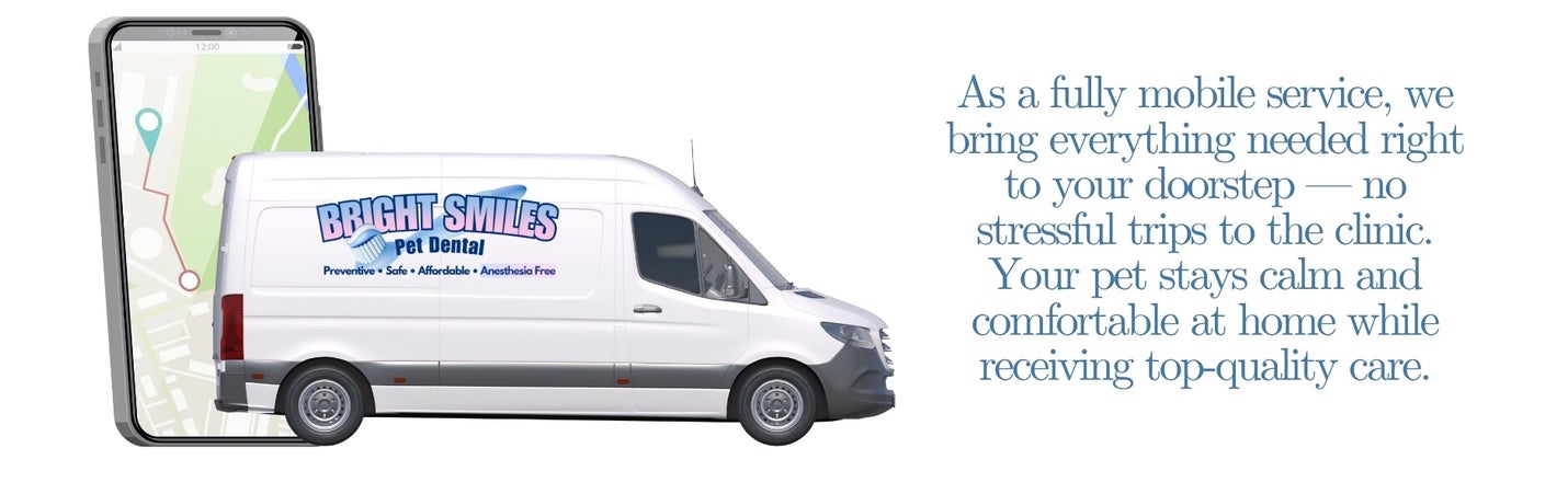 Bright Smiles Pet Dental distinguishes itself through its mobile service, delivering care directly in your pet’s home environment to minimize stress and anxiety. With my veterinary background, I bring a comprehensive understanding of oral pet health. This approach is especially advantageous for older or health-compromised pets, as it combines compassionate care with a holistic perspective on their oral health.